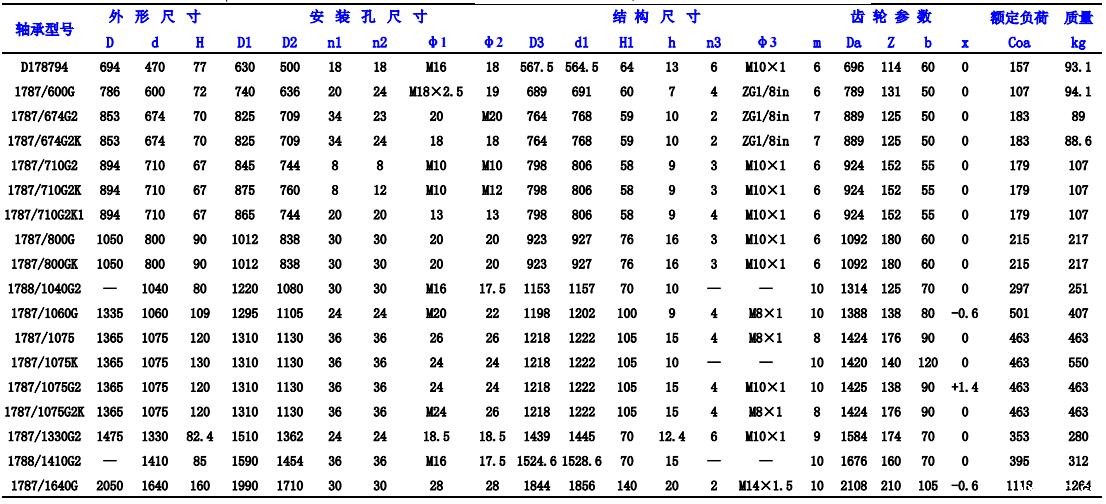 转盘轴承根据不同的结构点可分别满足各种不同负荷条件下工作主机的需求。其中,四点接触球转盘轴承具有较高的动负荷能力,交叉圆柱滚子转盘轴承具有较高的静负荷能力,三排圆柱滚子组合转盘轴承由于把承载能力的提高引向轴承的高度方向,各种载荷分别由不同滚道和滚子组承受,因此在同等受力条件下,其滚道的直径大大缩小,具有使主机更为紧凑的点,是种高承载能力的转盘轴承。