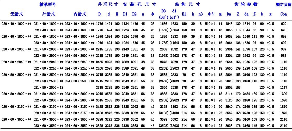 龙马双排异径球转盘轴承型号参照表: